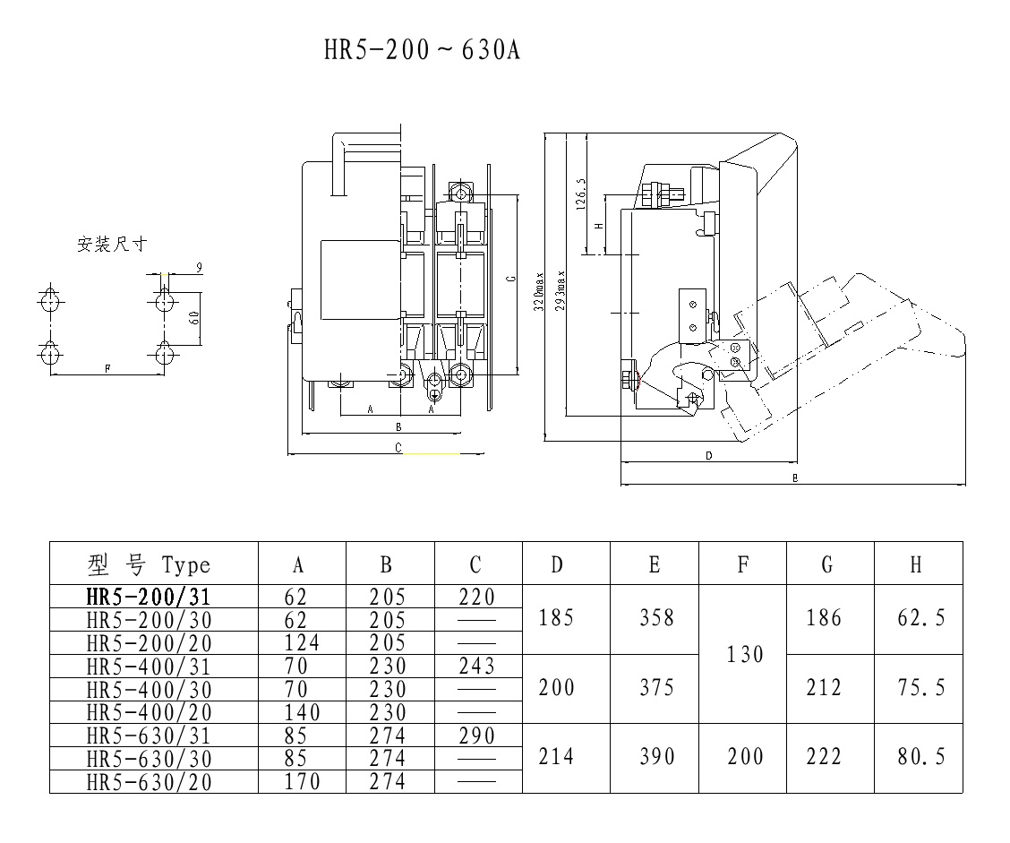 HR5系列熔断器式隔离开关,额定电压至交流380V,额定电流至  630A,适用于有高短路电流的配电电路和电动机电路中,作为手动不频繁操作的开关、隔离开关和应急开关,并作电路?;ぶ?,但一般不适用直接开关单台电动机。