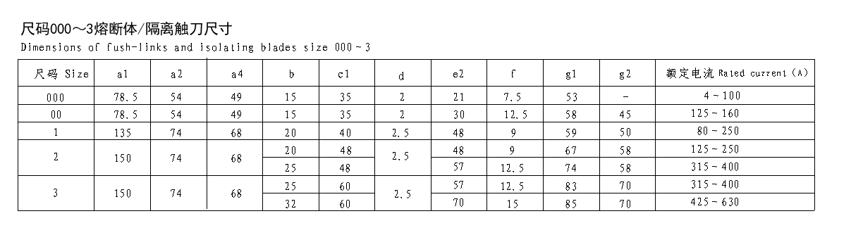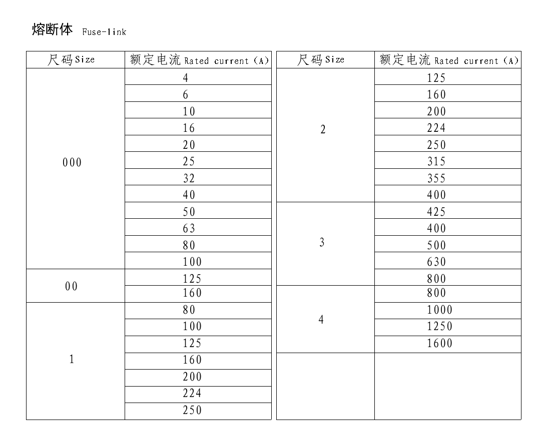 本系列熔断器能与国外符合IEC、DIN标准的同类熔断器完全互换。
