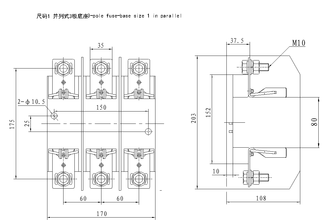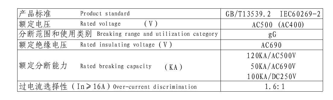 符合GB13539.2、IEC60269-2-1标准中的规定。