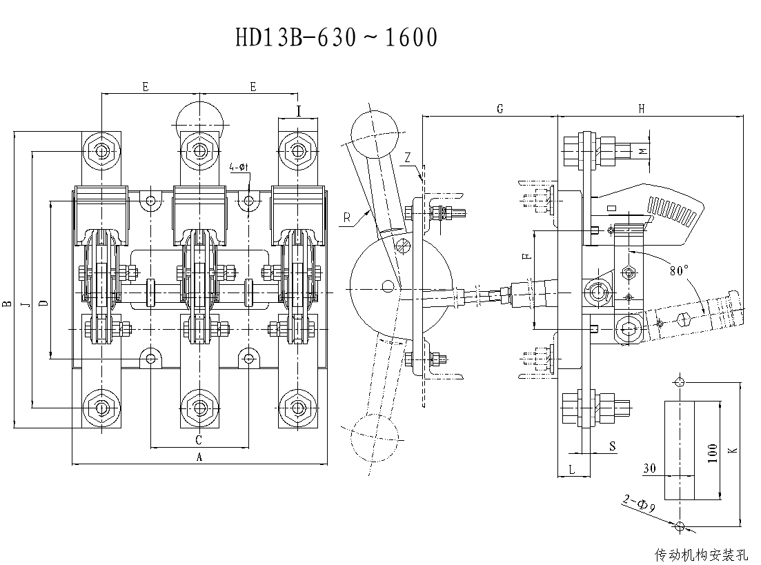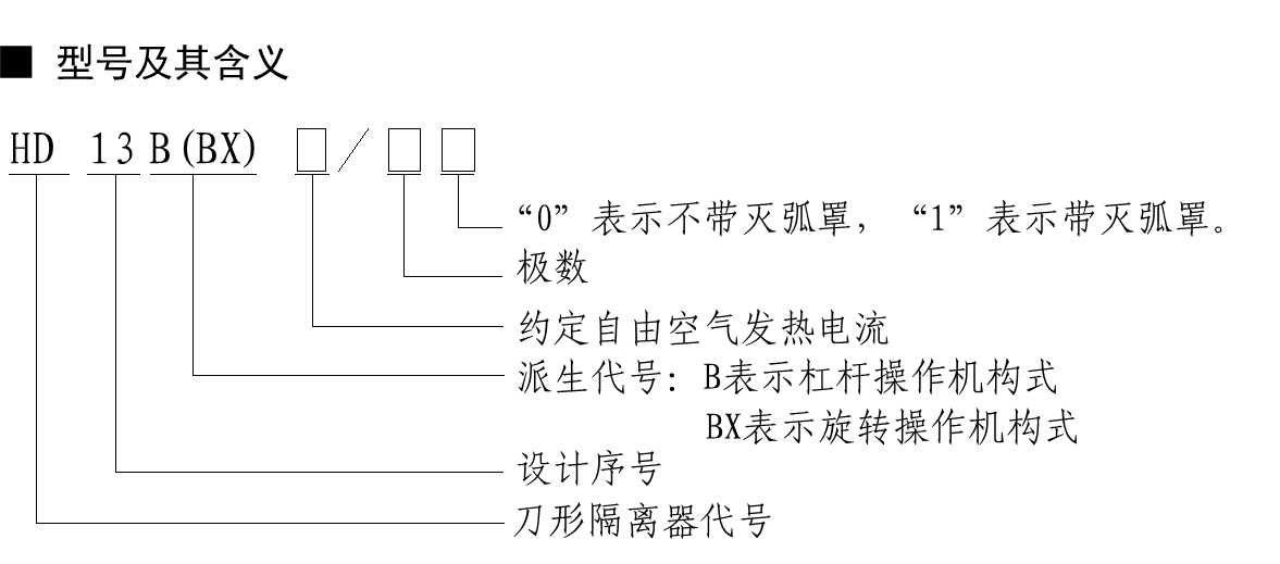 HD13B(BX)系列刀形隔离器适用于额定工作电压为交流380V,额定频率50Hz,额定工作电流至1600A。主要用于工业企业的配电设备中,用于接通或分断线路或者作为隔离开关之用。